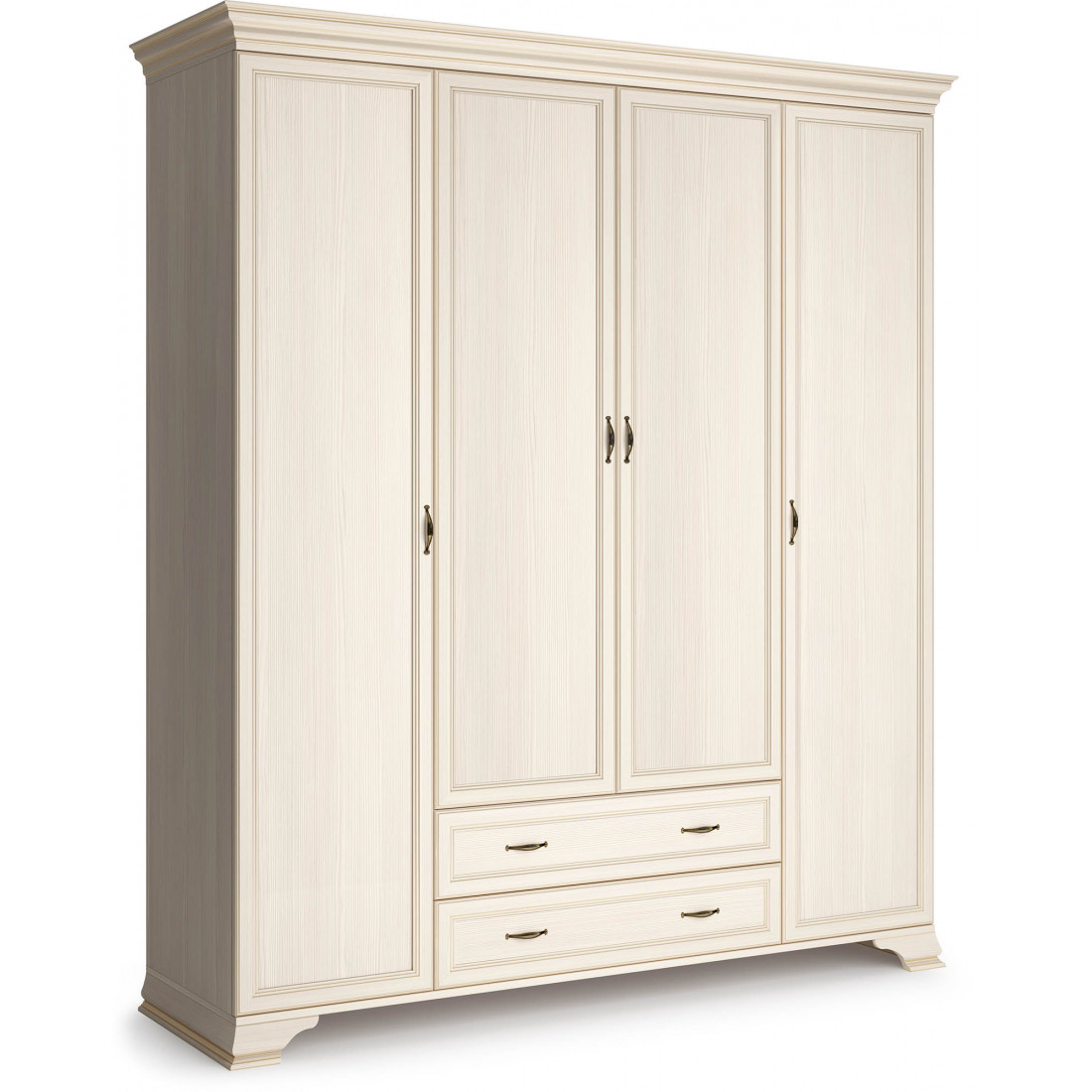 4-х дверный шкаф из коллекции для спальни «Сиена» подставляется в комплекте с боковыми фасадами, центральные двери (на выбор - зеркальные или глухие) поставляются отдельно от шкафа.